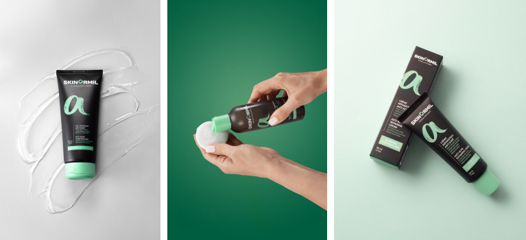 - Правильное очищение. Используйте мягкие средства для умывания, которые удаляют грязь и излишки себума, не пересушивая кожу. Это может быть АнтиАКНЕ Очищающий гель Скинормил, который идеально подходит для удаления загрязнений и устранения жирного блеска. Кроме того, средство используется для профилактики появления акне. Еще один отличный вариант — Skinormil АнтиАКНЕ Очищающий тоник, который имеет себорегулирующий и антибактериальный эффект. Этот продукт тщательно очищает поры и уменьшает воспаление.